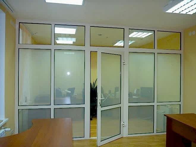Алюминиевые перегородки устанавливают в теплых и холодных помещениях. Алюминий прочен, легок и долговечен. Перегородки из ПВХ тяжелее алюминиевых конструкций, но теплее. Их устанавливают на проходных, Pin-Up в помещениях для консьержек, в холодных складах и ангарах.